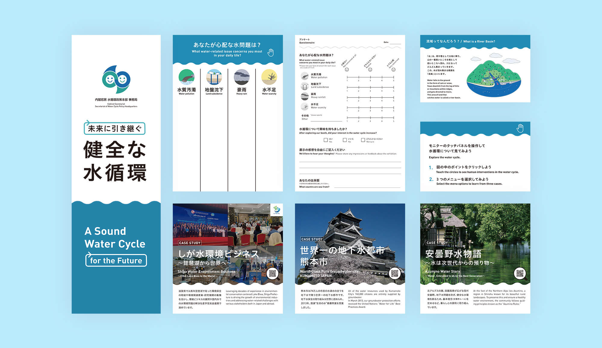 2025年9月23日〜29日に2025年日本国際博覧会(通称:大阪・関西万博)「フューチャーライフヴィレッジ」内で、内閣官房水循環政策本部事務局が展示した「未来に引き継ぐ健全な水循環(A Sound Water Cycle for the Future)」について、企画制作を担当した特定非営利活動法人日本水フォーラムの下、デザイン部門を担当しました。