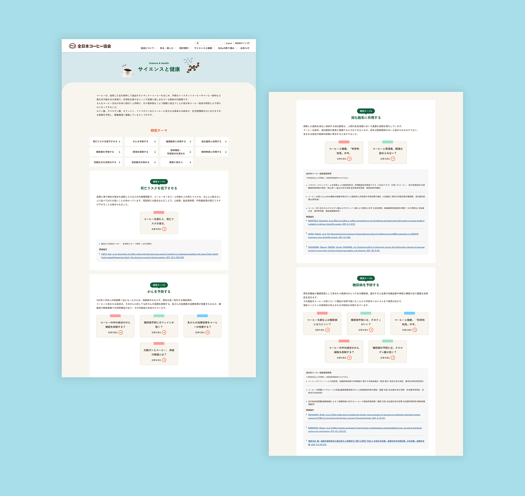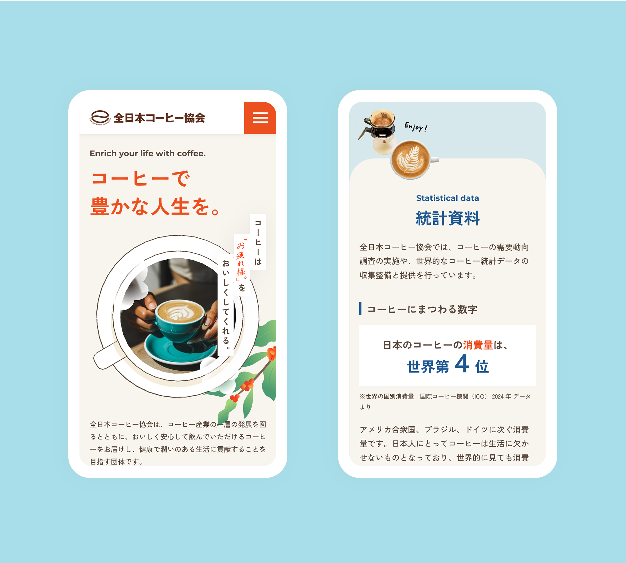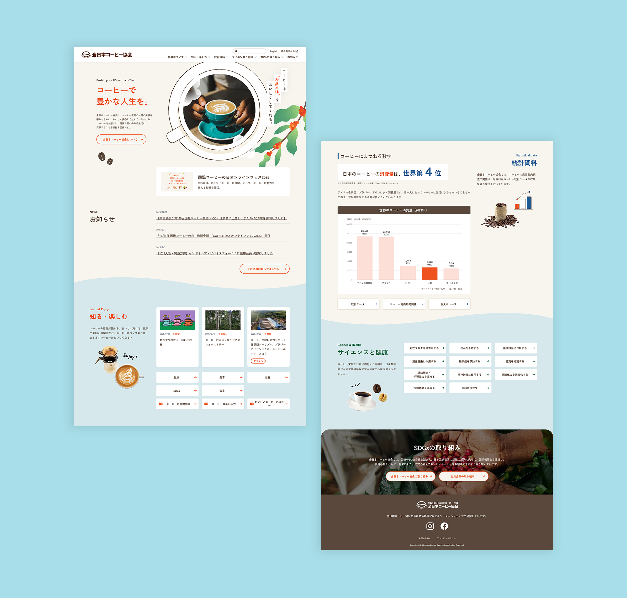 全日本コーヒー協会として、様々な情報発信を行っている責任や信頼性を持たせることをサイトの設計やデザインで意識しています。